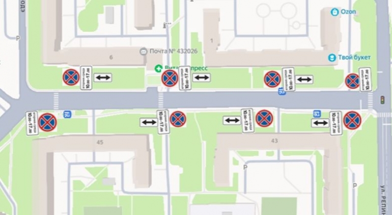 Чтобы увеличить число парковочных мест на улице Репина, на участке дороги от улицы Скочилова до улицы Архитектора Шодэ, остановка транспортных средств будет запрещена по вторникам и средам с 10.00 до 17.00.