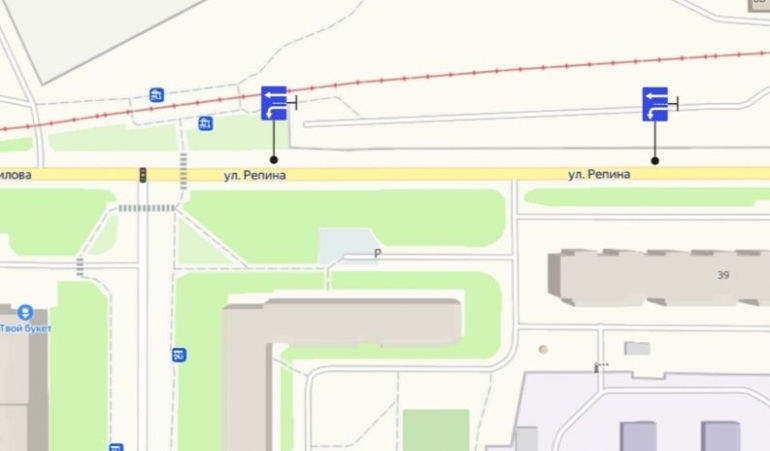 Для увеличения пропускной способности и обеспечения левого поворота на светофоре по улице Репина добавят полосу на участке дороги от дома № 39 до дома № 43.