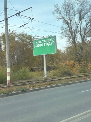 Предположений, что зашифровано на плакате с вопросом «С кем ты был в 2010 году?» масса. Очевидно, жителей областного центра призывают вспомнить самое главное событие тех времен. Вариантов масса. Летом того года в Ульяновске случилась аномальная жара, а зимой регион накрыл ледяной дождь. Также в 2010-м в Ульяновске открылся Макдональдс и прошли выборы мэра, в которых победил Александр Пинков. Тем же летом в Заволжье состоялся авиасалон, где силачи со всей России, словно бурлаки на Волги, тянули огромный самолет…