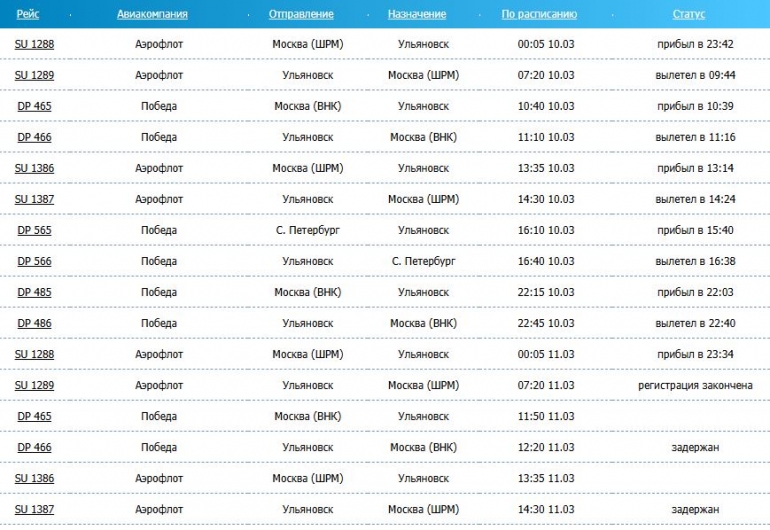Рейс DP 466 компании «Победа» должен был вылететь в 12:20 в Москву. Расчетное время вылета рейса SU 1387 — 14:30. Сроки его вылета также пока не сообщают.