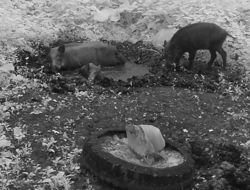 «Несмотря на непогоду, кабаны как по расписанию принимают грязевые ванны», - говорится в подписи к видео.