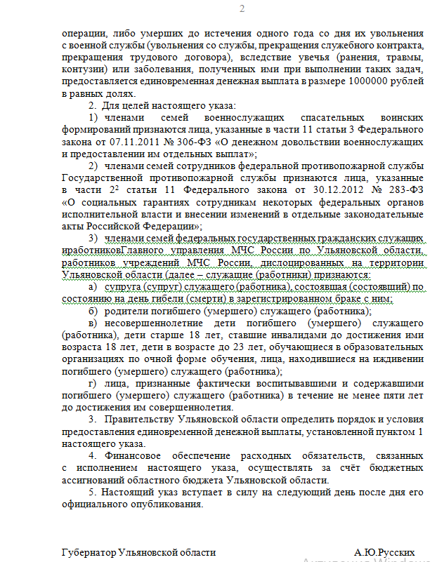 Членам семей погибших в зоне проведения специальной военной операции спасателей в Ульяновской области намерены выплачивать по миллиону рублей. Проект Указа губернатора Алексея Русских опубликован на сайте регионального правительства.