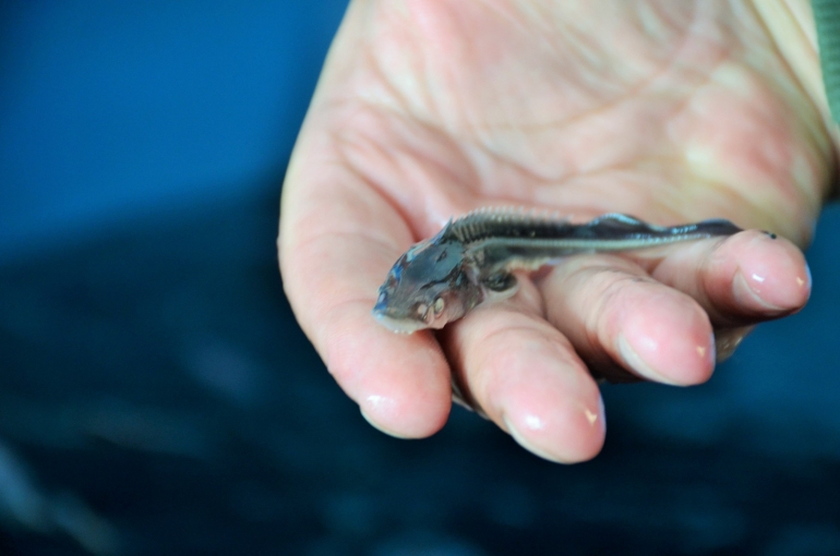 К берегу Куйбышевского водохранилища стерлядь доставали в специальных контейнерах с холодной водой, насыщенной кислородом. Перед выпуском проверили температуру водоема – перепад не должен превышать 4° С.