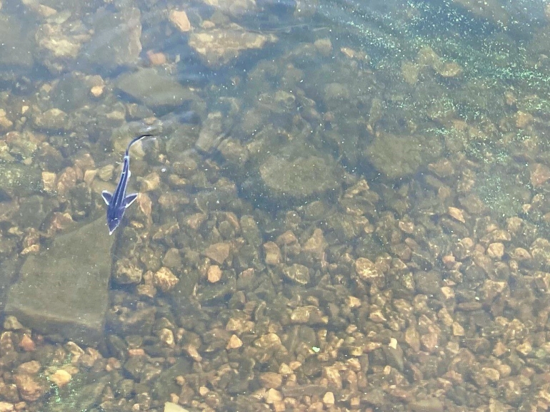 Спустя 15 минут более тысячи маленьких рыбок уже плавали в естественной среде обитания в поисках корма.