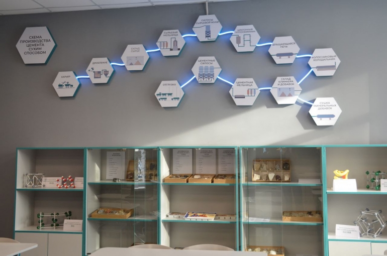 В учебных пространствах появились персональные компьютеры с установленным программным обеспечением, необходимым для выполнения экзаменационных заданий, интерактивная таблица Менделеева, современные микролаборатории, а также аудитории украсили профориентационные стенды, где представлены схема производства цемента, и профессии, востребованные в этой отрасли. Теперь обновленные кабинеты полностью готовы обеспечить студентов знаниями и навыками, необходимыми для работы на промышленных предприятиях.