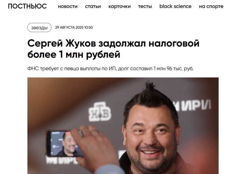 29 августа «Постньюс», сославшись на собственные источники, сообщил, что исполнитель должен ФНС 1 миллион 96 тысяч рублей.