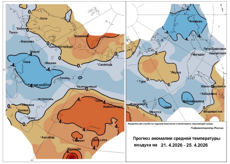 - День: Небольшой дождь при температуре +4...+9 °C. Регион остается в «синей зоне» холода, ощутимо холоднее обычного для этого времени года.