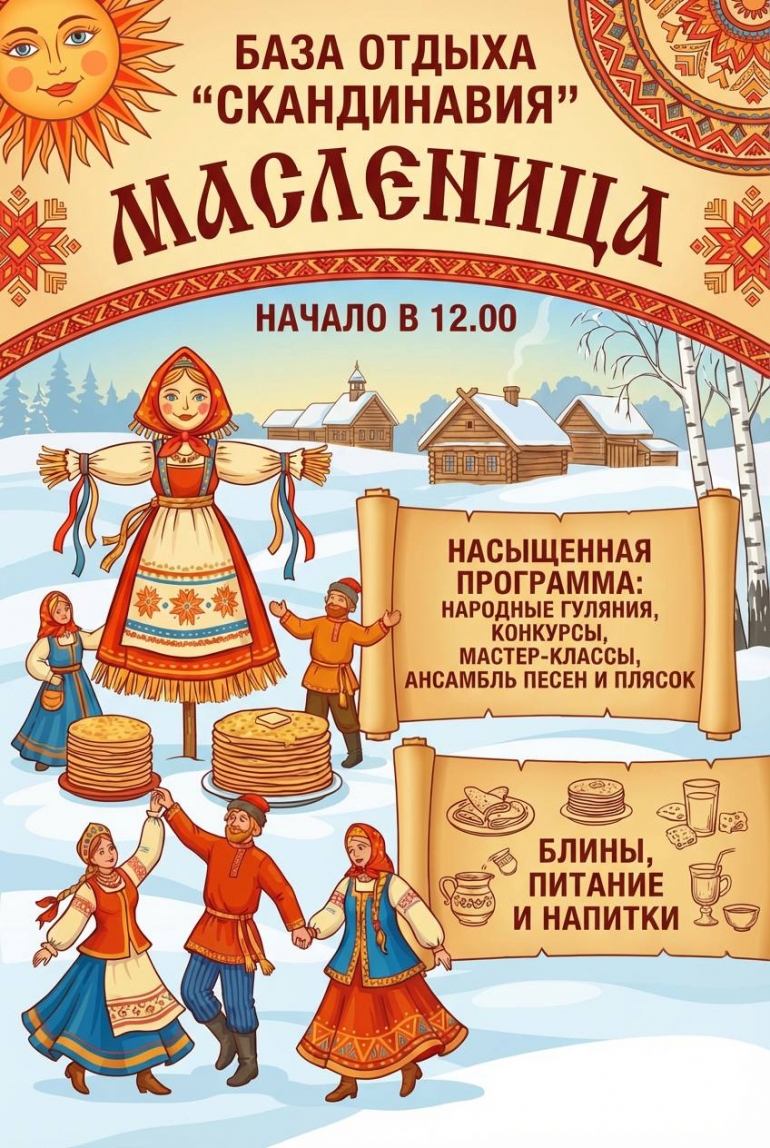 22 февраля в 12:00 на базе отдыха «Скандинавия» провожаем зиму!