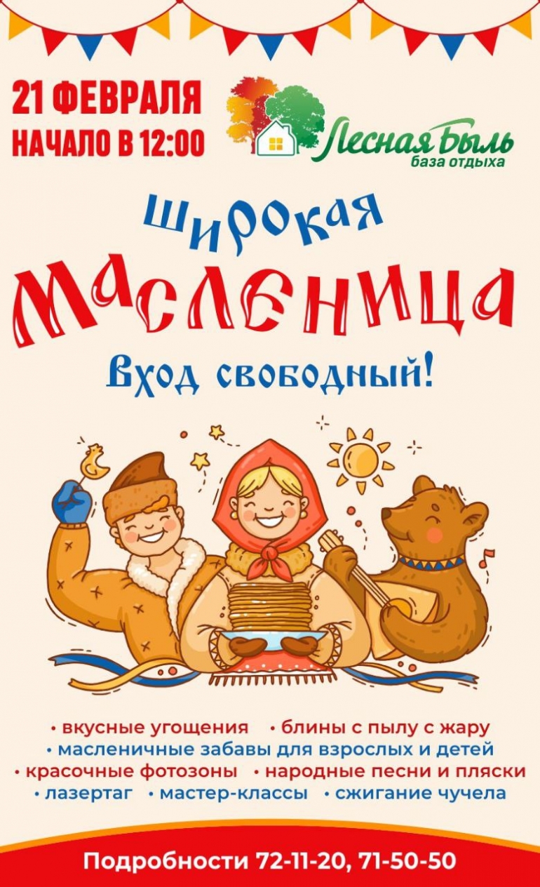 21 февраля. Начало в 12:00 на базе отдыха «Лесная быль» гостей ожидают: