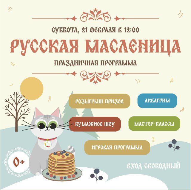 21 февраля в 12:00 широкая Масленица в ТPЦ «Пушкаревское кольцо».