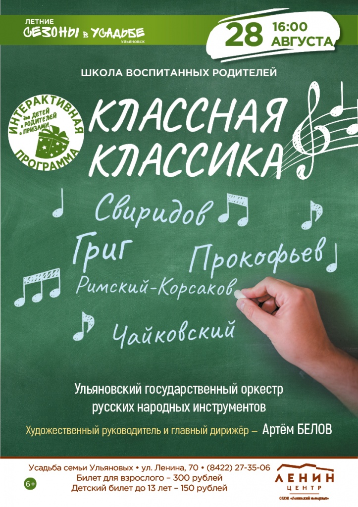 27 августа в 18.30 на Летней эстраде Усадьбы семьи Ульяновых.