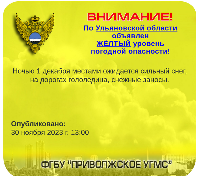 Ульяновскую область снова завалит снегом: Гидрометцентр предупреждает жителей региона об ухудшении погоды ближайшей ночью. Объявлен «жёлтый» уровень опасности.