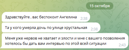 Через две недели после выхода последней публикации, девушка обратилась к журналисту 73online.ru с желанием дать интервью. Однако так и не продолжила диалог.