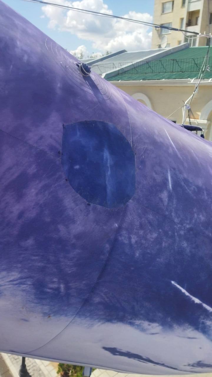 О «ранении» большого синего кита, висящего над пешеходной улицей выходного дня, мы писали вчера вечером. На боку у него появилось отверстие примерно в 10 см длиной. «На плаву» животному помогал держаться компрессор.