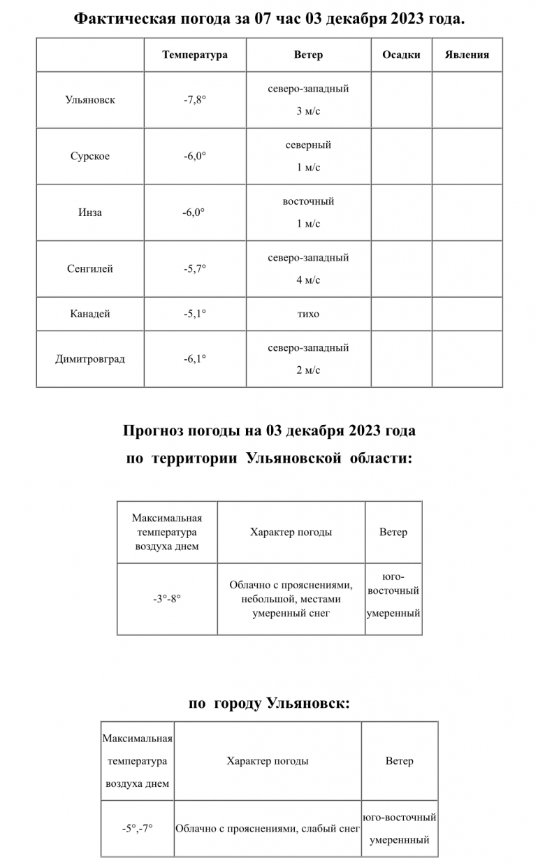 В воскресенье, 3 декабря, в Ульяновской области прогнозируется облачная погода с прояснениями, местами возможен небольшой снег.