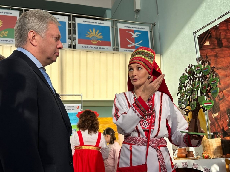 В мордовском уголке губернатору показали фино-угорское дерево с 19 народами и рассказали про вепсов.