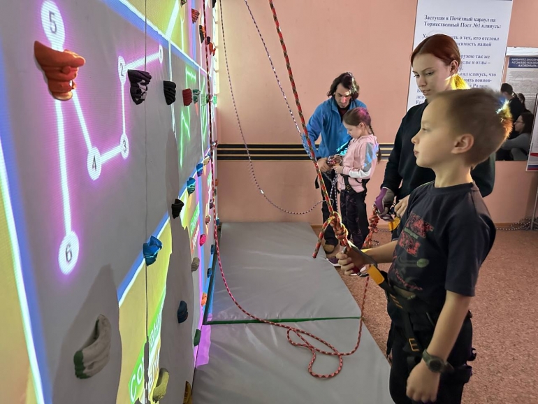 Для ребят представлен скалодром.
