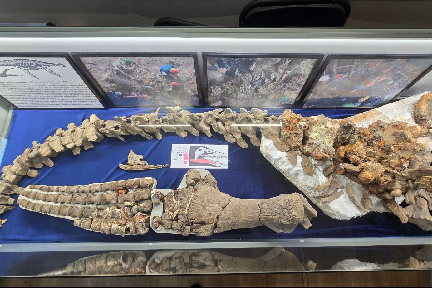В Ундоровском палеонтологическом музее открылась выставка, посвященная недавней находке московских учащихся ПалеоКружка. Они обнаружили скелет плезиозавра в юрских отложениях разреза Городищи.