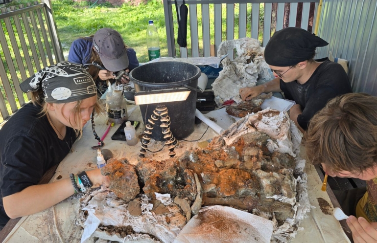 После извлечения на базе музея ребята продолжили работу по препарированию скелета.
