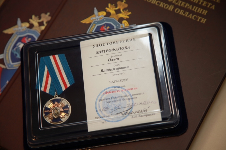 После беседы по поручению председателя Следственного комитета России Александра Бастрыкина руководитель регионального управления вручил семье Ольги Митрофановой ведомственную медаль «Доблесть и отвага». Михайлов отметил, что подвиг женщины, ее самоотверженность, личная смелость, готовность пожертвовать собой ради детей являются примером высокой гражданской и профессиональной ответственности.