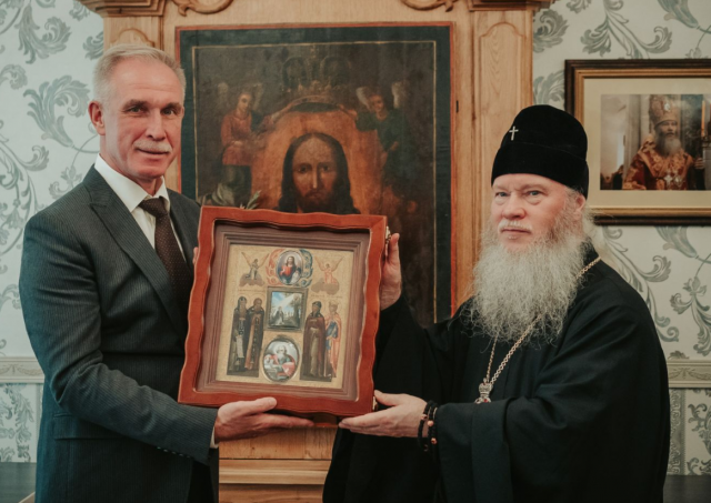 Сергей Морозов и Владыка Иосиф обменялись символическими подарками. Губернатор преподнес в дар знаменитый труд Николая Карамзина «История Государства Российского», Митрополит подарил ему старинную икону Сергия Радонежского.