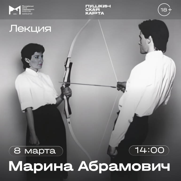 8 марта в 14:00 в МЦСИ (улица Ленина, 83) пройдёт лекция о перформативном искусстве Марины Абрамович, одной и самых известных художниц современности. Действует Пушкинская карта.