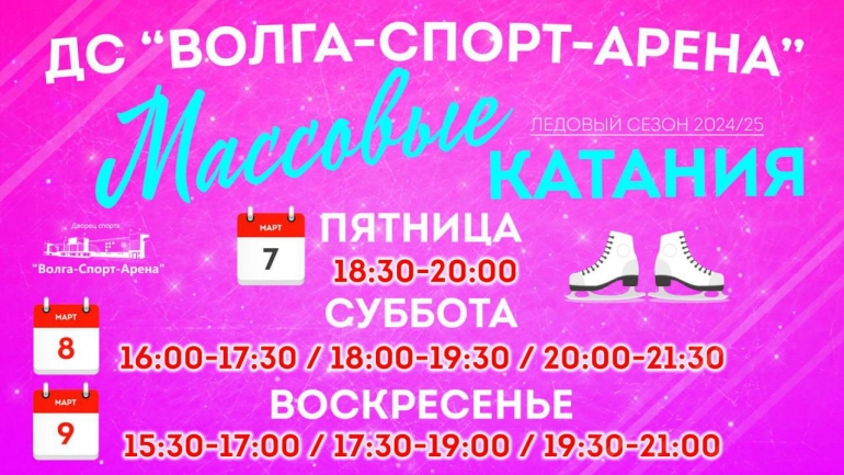 7,8,9 марта в «Волга-Спорт-Арена» (Октябрьская ул., 26б) состоятся массовые катания.
