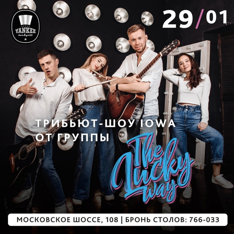 29 января в 20.00 в YANKEE Bar & Grill кавер-группа LUCKY WAY представят трибьют-программу с самыми известными и любимыми песнями группы IOWA. Кавер-группа LUCKY WAY — это сладкоголосая акустика из Ульяновска.