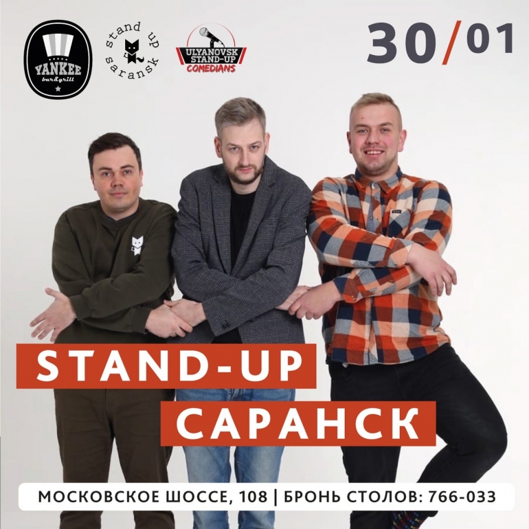 30 января в 20.00 в YANKEE Bar пройдёт вечер стендап-комедии от представителей столицы Мордовии. Перед зрителями выступят комики одного из самых крутых стендап-движений Поволжья.