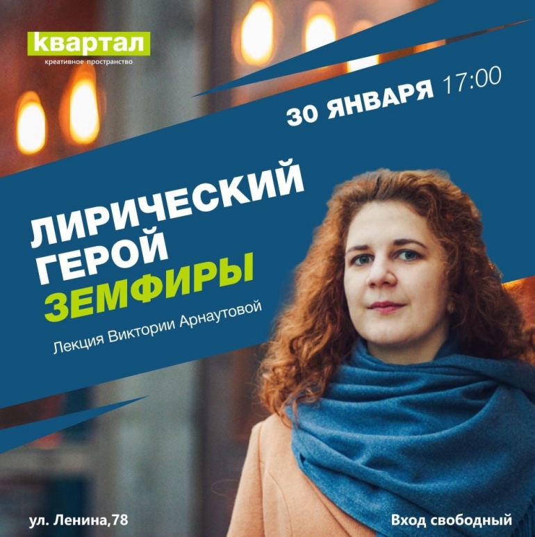 Вход свободный. Место: Креативное пространство «Квартал», ул.Ленина, 78.