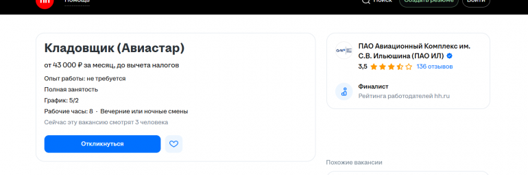 Специалистам же других направлений, даже на одном предприятии, сулят отнюдь не рекордные доходы. Инженер по качеству от 60 до вычета, контролёр ОТК от 55 до снятия НДФЛ, кладовщик от 43.