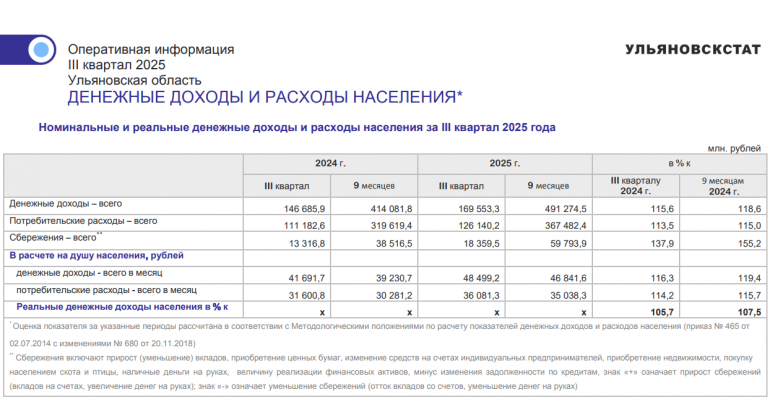 Реальные денежные доходы в 3 квартале 2025 года по сравнению с соответствующим периодом предыдущего года увеличились на 5,7%.