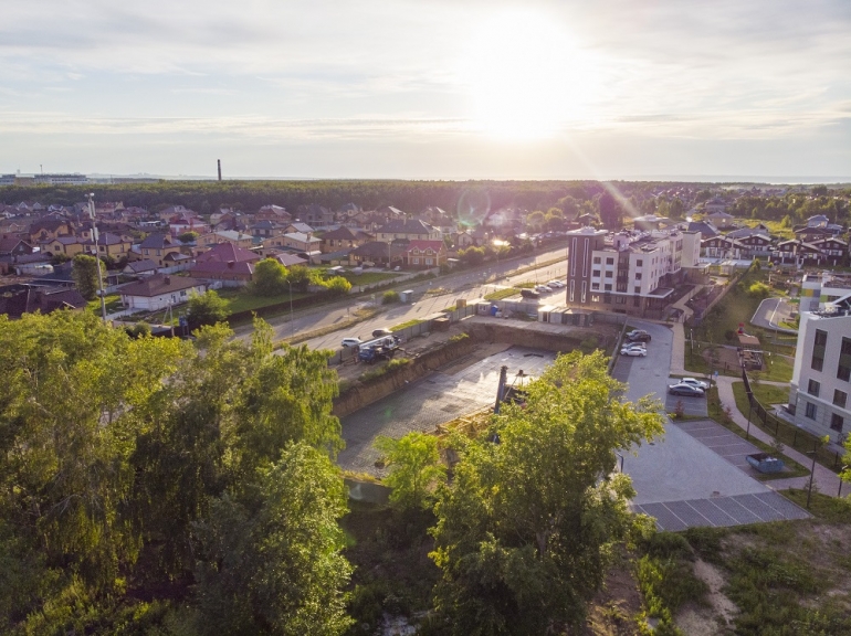 Придомовая территория Дома на Генерала Кашубы, утопающая в зелени деревьев, злаков и цветников, располагает к спокойствию и умиротворению. Ландшафт гармонично дополняют деревья, благодаря которым жители смогут любоваться сменой всех четырех сезонов.