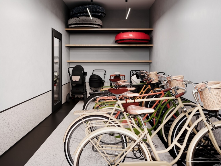 В каждой секции есть собственная колясочная. Там же можно оставить велосипеды и самокаты, а также сезонный инвентарь. Больше не нужно загромождать балкон или лестничную площадку — здесь для всего найдется свое место, что позволит сохранить порядок и чистоту в вашей квартире.