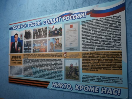 Городская администрация сообщает, что в школе №48 города Ульяновска установили мемориальный стенд в честь участника СВО Шамила Латыпова.