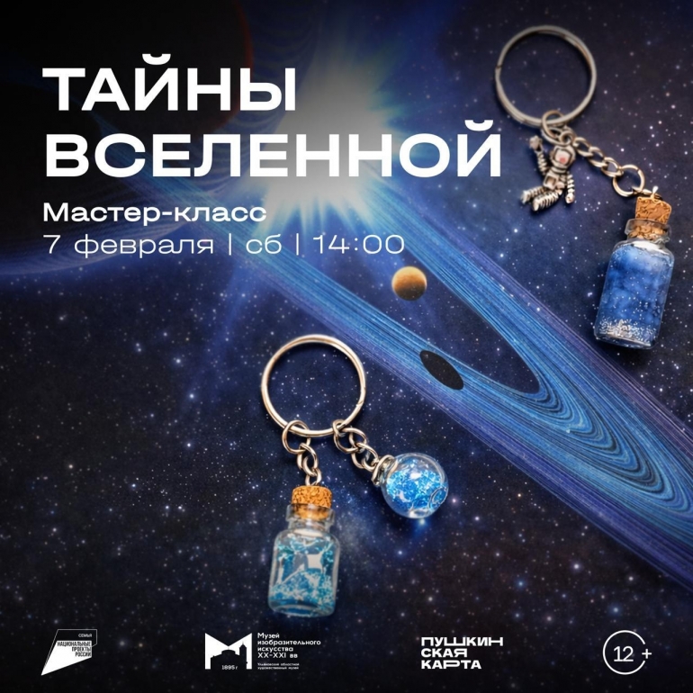 Мастер-класс откроет двери в мир тайн и загадок Вселенной, приглашая отправиться в увлекательное путешествие сквозь пространство и время. Мы обсудим тему межзвездных полетов и познакомим с уникальной программой, представляющей собой созвездие шедевров мирового искусства, вдохновленных космосом. Кульминацией станет мастер-класс по созданию эксклюзивного брелока «Тайны Вселенной».