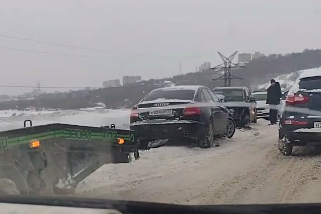 Очевидцы в соцсетях сообщают, что лоб в лоб сошлись Audi и Haval на подъезде к переправе с правого берега. В результате образовалась пробка, которая растянулась на пять километров.