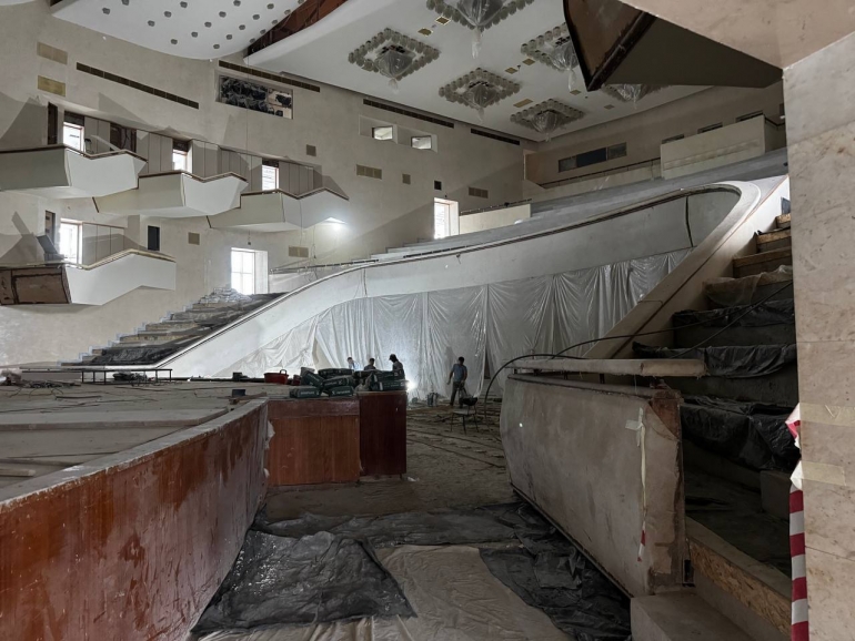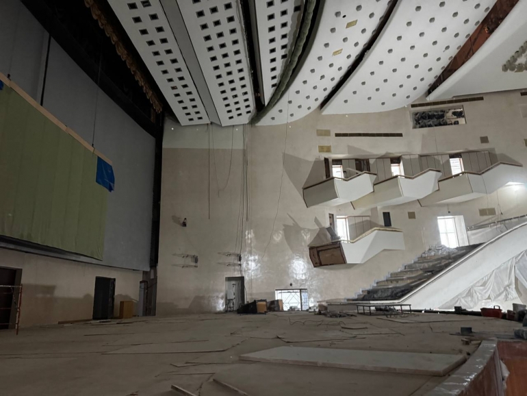 Сейчас идут строительно-монтажные и отделочные работы в холле первого этажа, большом концертном зале, музее и кинозале. В Башне — отделочные работы близятся к завершению. Ремонт ОПЦ полностью завершен.