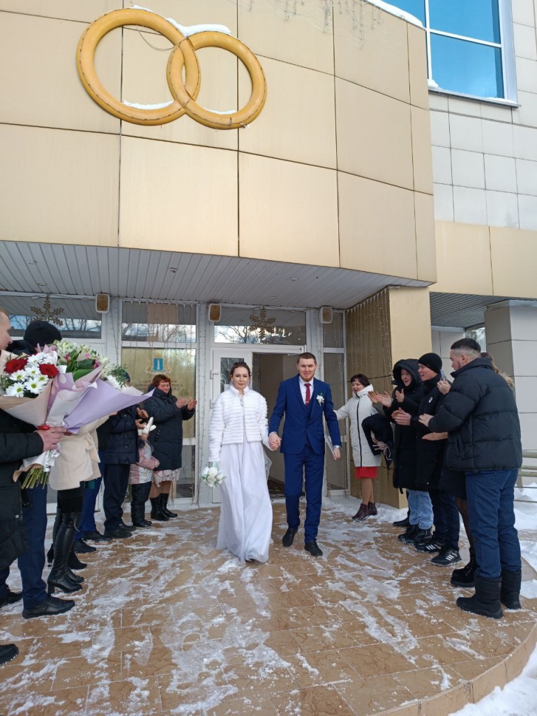 - Я всегда мечтала сыграть свадьбу зимой, но боялась, что будет грязь и слякоть, но сегодня чудесная погода и моя мечта сбылась! К тому же, очень красивая дата, - улыбается Ангелина.
