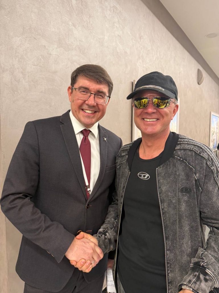 С руководителем регионального центра «Мой бизнес» и известным модником Русланом Гайнетдиновым.
