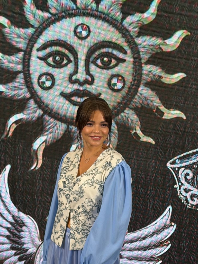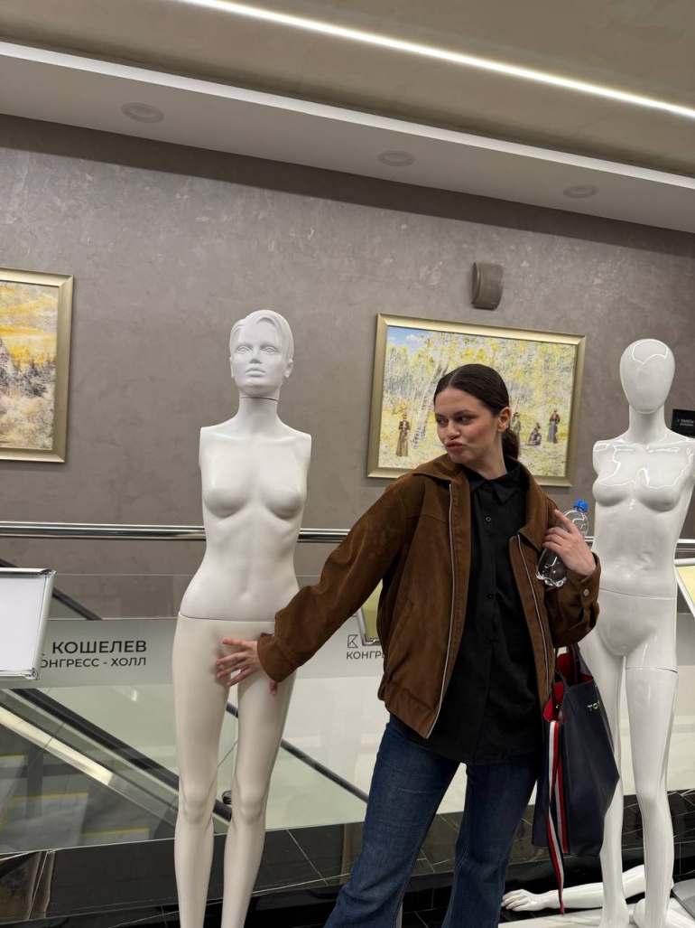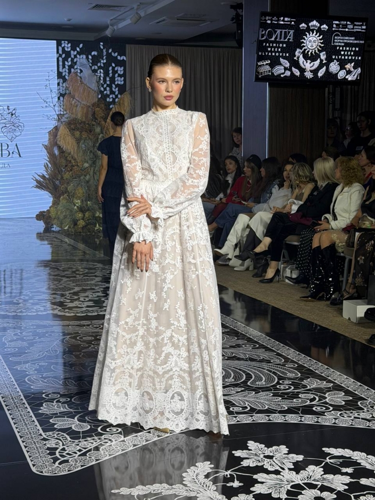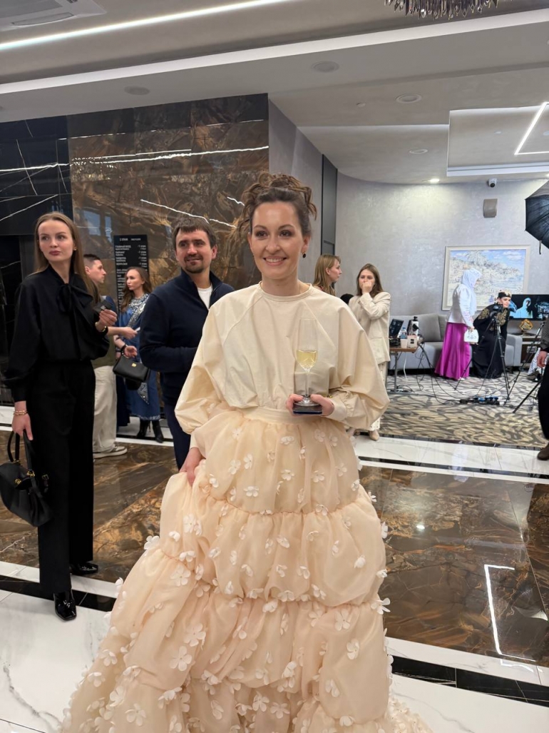 После показа мы снова наведались в галерею Акрамовского, где встретили генерального продюсера ульяновской Недели моды Алису Богатову — она была в нежно-молочном наряде из своей коллекции.