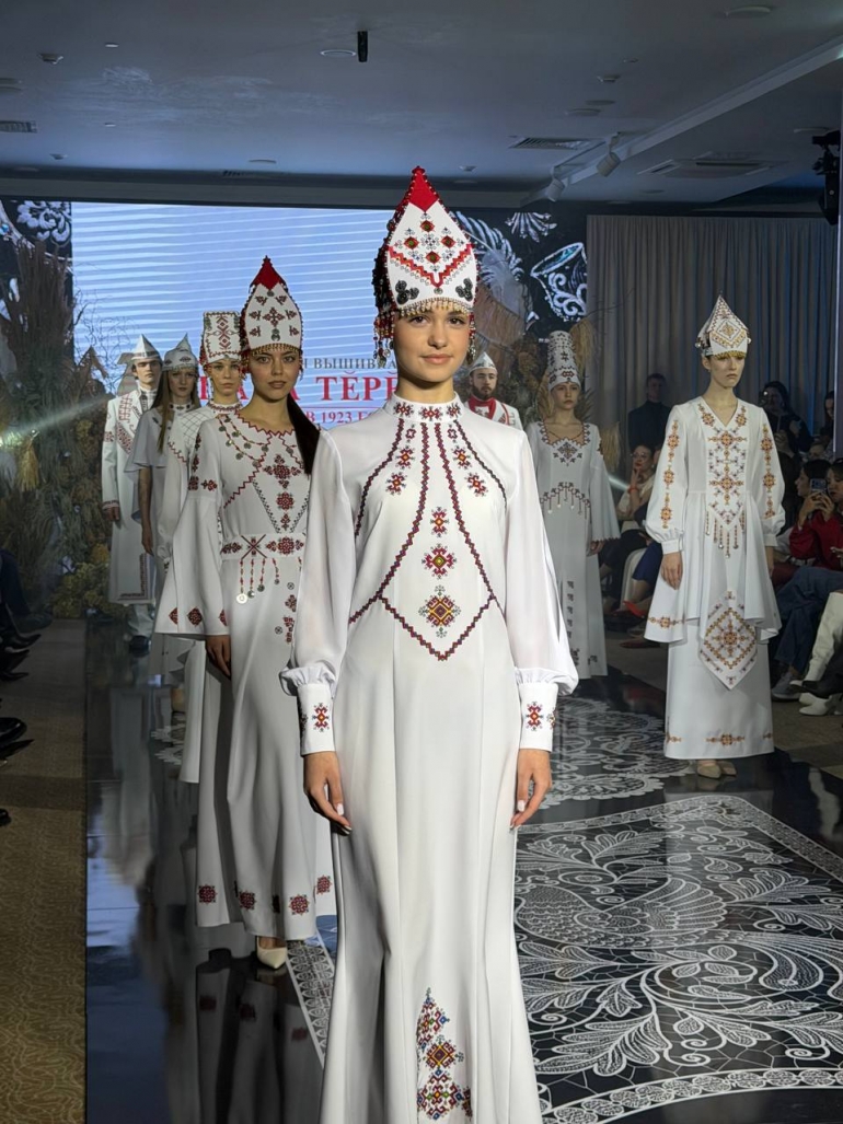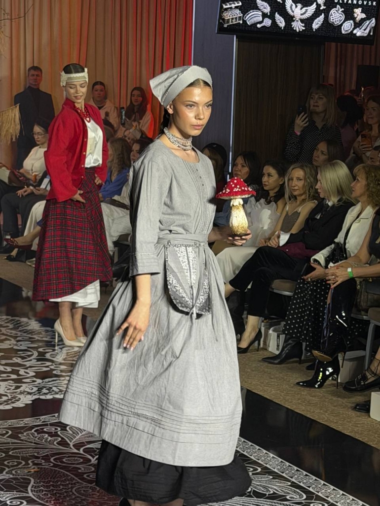 Буйство национальных мотивов продолжилось кокошниками, фартуками-юбками, мехами, платками, мухоморами...