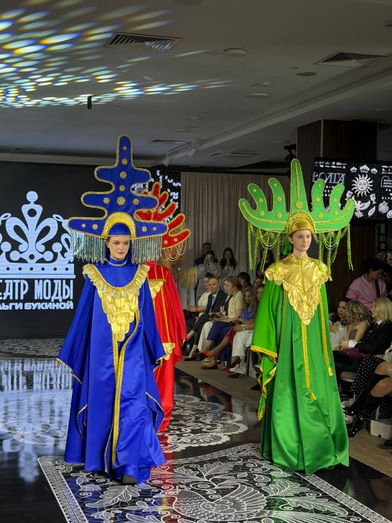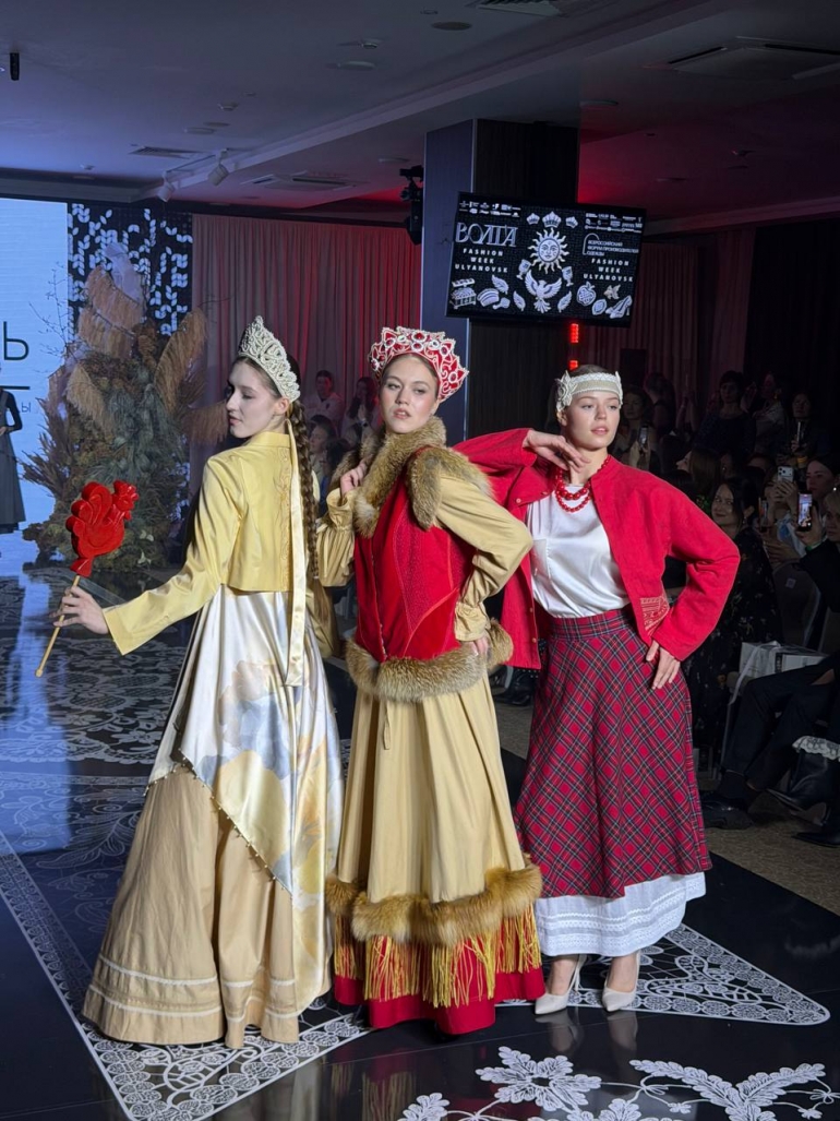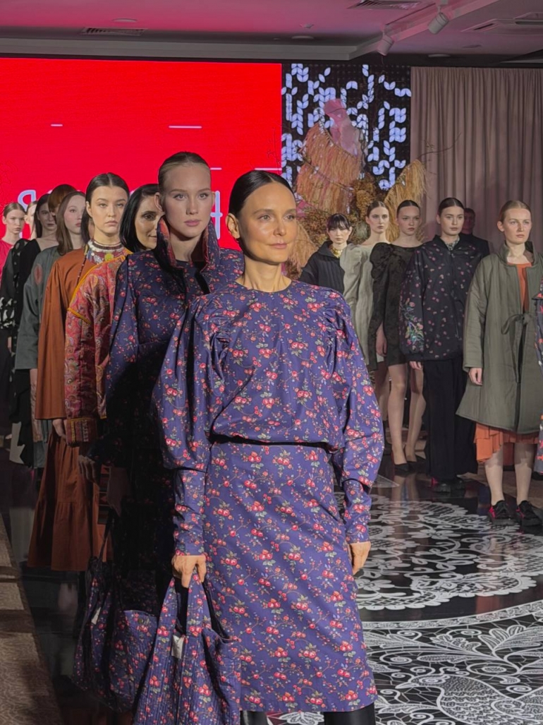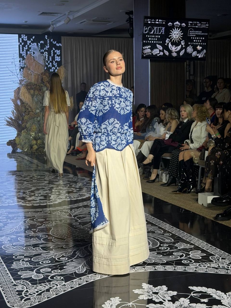 Насмотревшись на нестандартную интерпретацию волжских берегов, мы отправились в «Рэдиссон», на показ Volga Fashion Week в рамках Второго Всероссийского форума производителей одежды. Коллекции в этот раз должны были отличаться национальным культурным кодом.