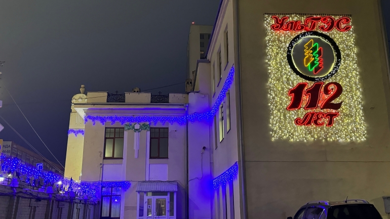 УльГЭС не осталась в стороне. Административное здание организации украсили новогодней подсветкой.
