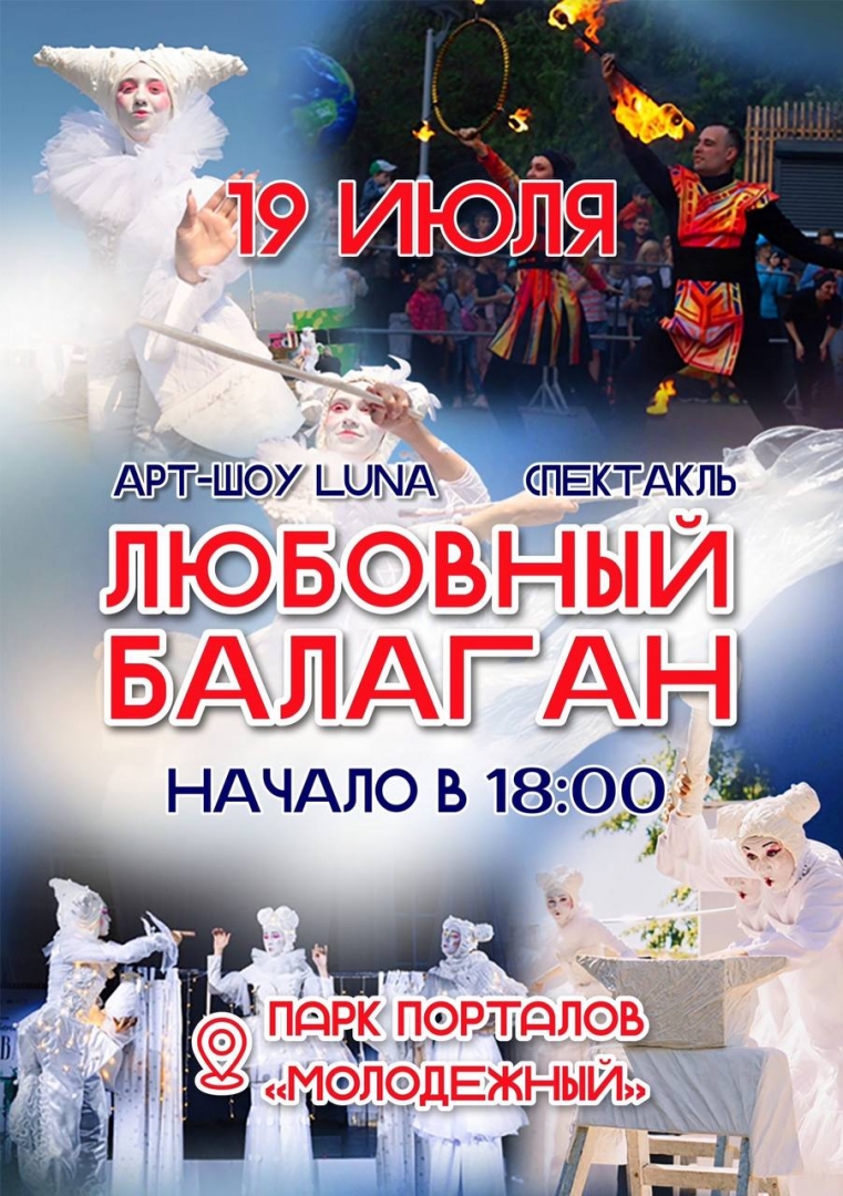 В субботу, 19 июля, в парке «Молодежный» пройдёт премьера уличного спектакля «Любовный балаган» — новой постановки арт-шоу LŮNA. Зрителей ожидает красочное представление в духе средневекового народного театра, основанного на традициях итальянской комедии дель арте.