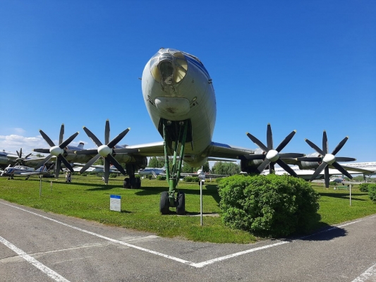 Самолёт уникальный - четыре огромных двигателя, каждый мощностью 15 тысяч лошадиных сил, вращали соосные винты в противоположные стороны. Это видно по фольге, которая прикреплена на краешке лопастей: четыре лопасти движутся по часовой стрелке, четыре против. Это создавало мощную тягу и самолёт развивал высокую по тем временам скорость в 850 км/ч. Но это же уникальное техническое решение создавало и главную проблему самолёта - он был шумный. Был изготовлен 31 самолёт, на сегодняшний день сохранилось только 3.