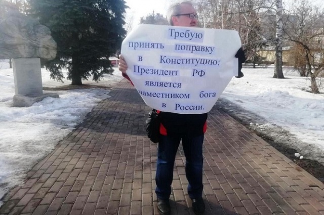 Председатель реготделения движения «Солидарность» Игорь Топорков в своём очередном одиночном пикете присоединился ко всеобщему празднику переписывания Конституции.