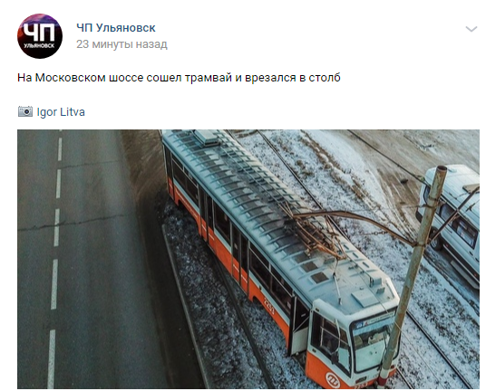 Очевидцы в соцсетях сообщают о ДТП: сегодня, 17 ноября, в девятом часу на Московском шоссе сошел с рельсов трамвай и врезался в столб. В девять утра движение электротранспорта было все еще оставлено.