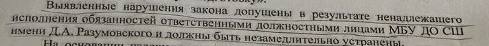 — Директор своими действиями срывает учебный процесс, дети не имели возможности тренироваться в спортивной школе. Мы неоднократно обращались в прокуратуру и Заволжского, и Ленинского районов. Оба ведомства давали предписания о том, что действия руководства незаконны и нарушают уставную деятельность. Все эти документы проходят через управление спорта. К Скобелину мы тоже обращались и просили разобраться, но он отвечает, что никакого нарушения не было. Получается, он способствует этой деятельности, — рассуждает тренер. Он отмечает, что у него на руках есть около 20 постановлений от прокуратуры, которые были направлены Скобелину с требованиями об устранении нарушений.