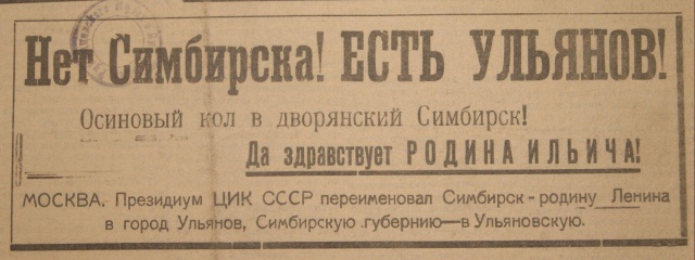 В январе 1924 года Ленин умер. Всего за несколько дней после смерти вождя №1 Петроград стал Ленинградом. А Симбирск по-прежнему оставался Симбирском, хотя включился в эту эстафету куда раньше. Чтобы не давать повода ликовать троцкистам, придрались к формальностям: в Советской России уже было два Ленинска. В марте 1924 года симбиряки предложили на суд столице новый оригинальный вариант – Ильич. 9 мая 1924 года декретом ВЦИК Симбирск был переименован в Ульяновск.